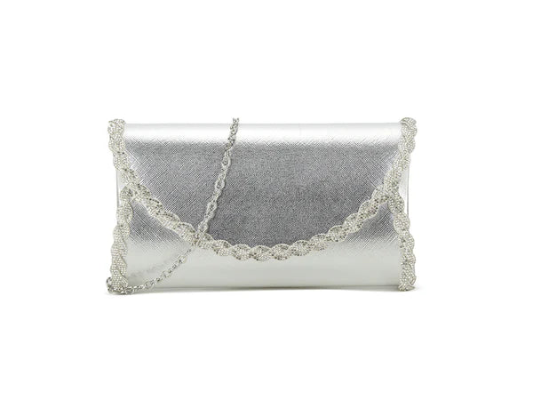 Embrace a slower pace with this charming silver clutch—your perfect companion for nights out or special occasions. Crafted with understated elegance, its compact design fits all your essentials while making a subtle statement. The lustrous silver finish catches the light beautifully, adding a touch of sophistication to any outfit. Whether you're heading to dinner or a celebration, this clutch reminds you to savour the moment in style.