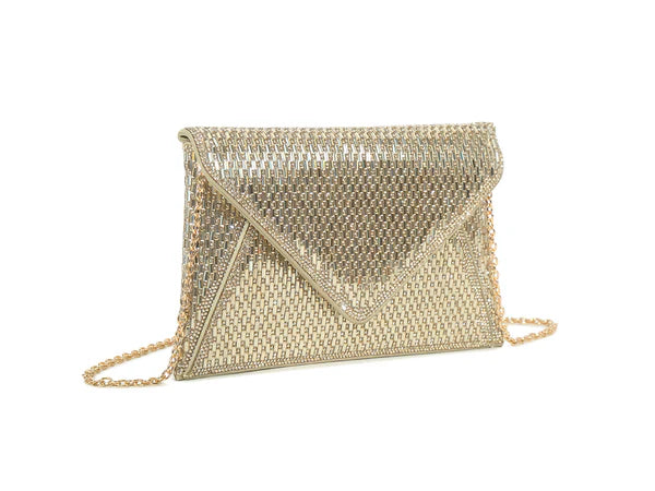Elevate your evening look with the Nile Gold Clutch—a dazzling accessory that catches the light from every angle. This gorgeous sparkly clutch is your ticket to feeling fabulous at any occasion, whether you're heading to a night out or a special celebration. The shimmering gold finish adds instant glamour to any outfit, while its compact design keeps your essentials close. Perfect for those moments when you want to shine just a little bit brighter.