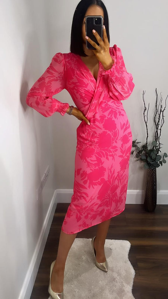 Turn heads in the Layne Pink Dress! This hot pink print dress features a unique cross over front detail, perfect for standing out at weddings, confirmation or First Holy Communion. Get ready to make a statement!