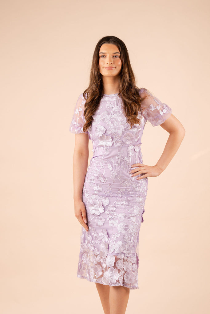 Take your style to new floral heights with our Lovely Lilac Dress! This gorgeous dress features a beautiful lilac colour and intricate 2D floral detailing. Perfect for elegant weddings, confirmations, and first holy communions.